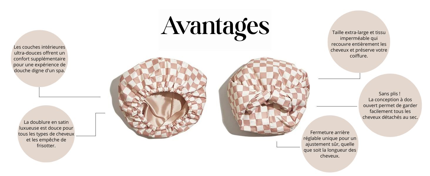 Gardez les cheveux au sec : le design double couche en satin avec son revêtement imperméable garantit que vos cheveux ne seront pas mouillés sous la douche.